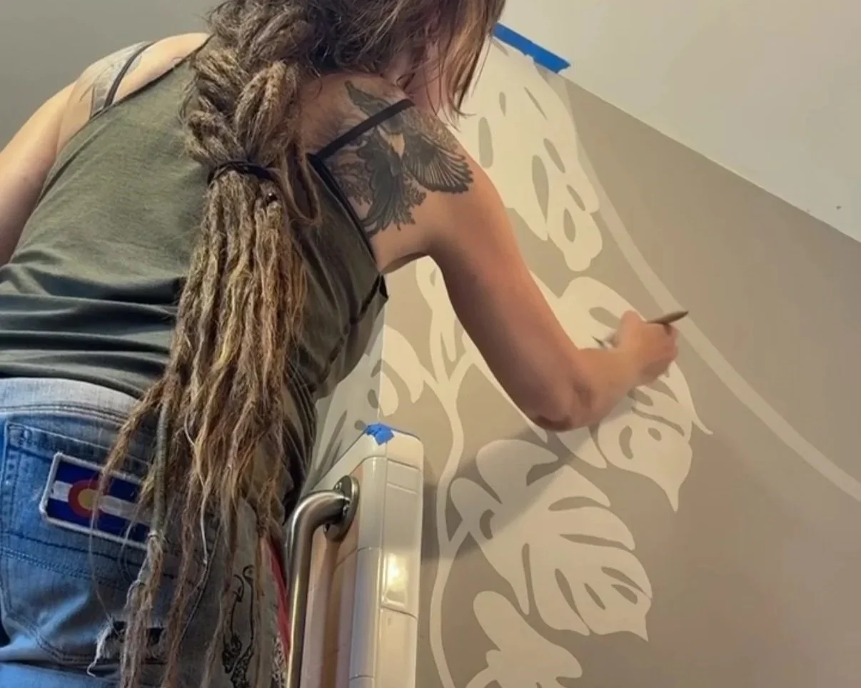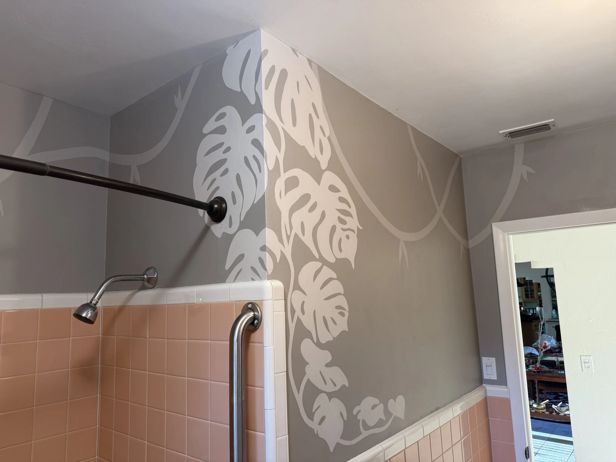 Whelp, I’ve gone and done it again - a subtle yet very tropical two-tone mural (well, maybe three if you count the wall). painted using my extra smooth Zibra triangle brushes.