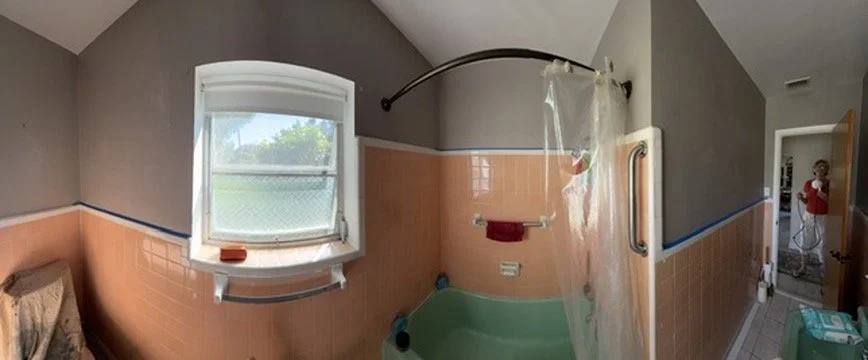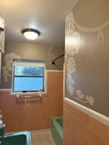 This time it was a bathroom that you wouldn’t think was drab considering the bright green and pink tile, but was definitely missing some of the lush tropical vibes nestled directly outside of my parents’ South Florida lake house.