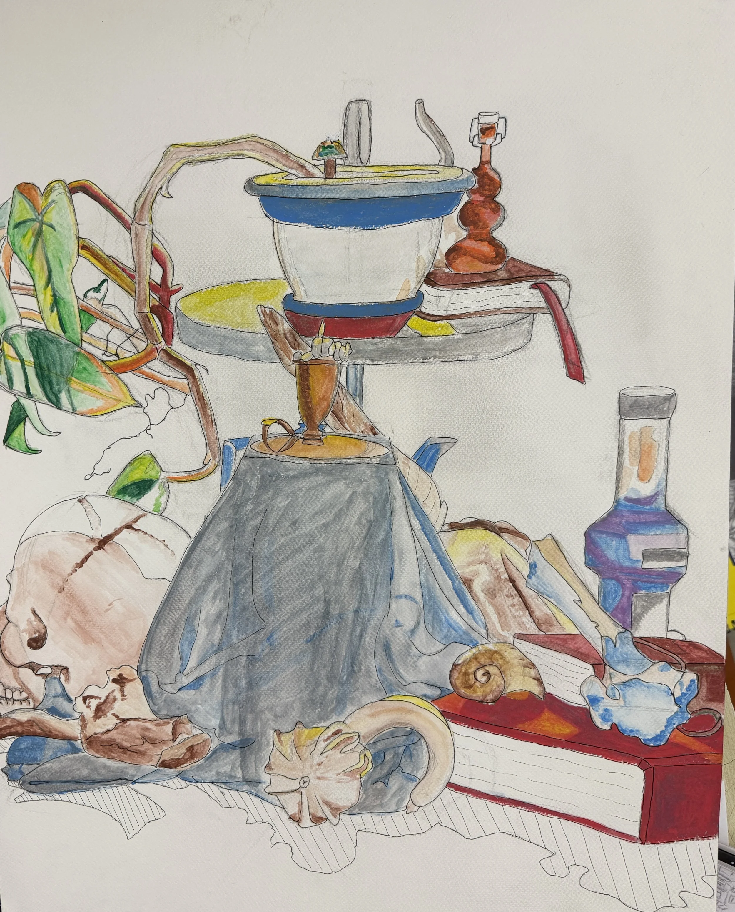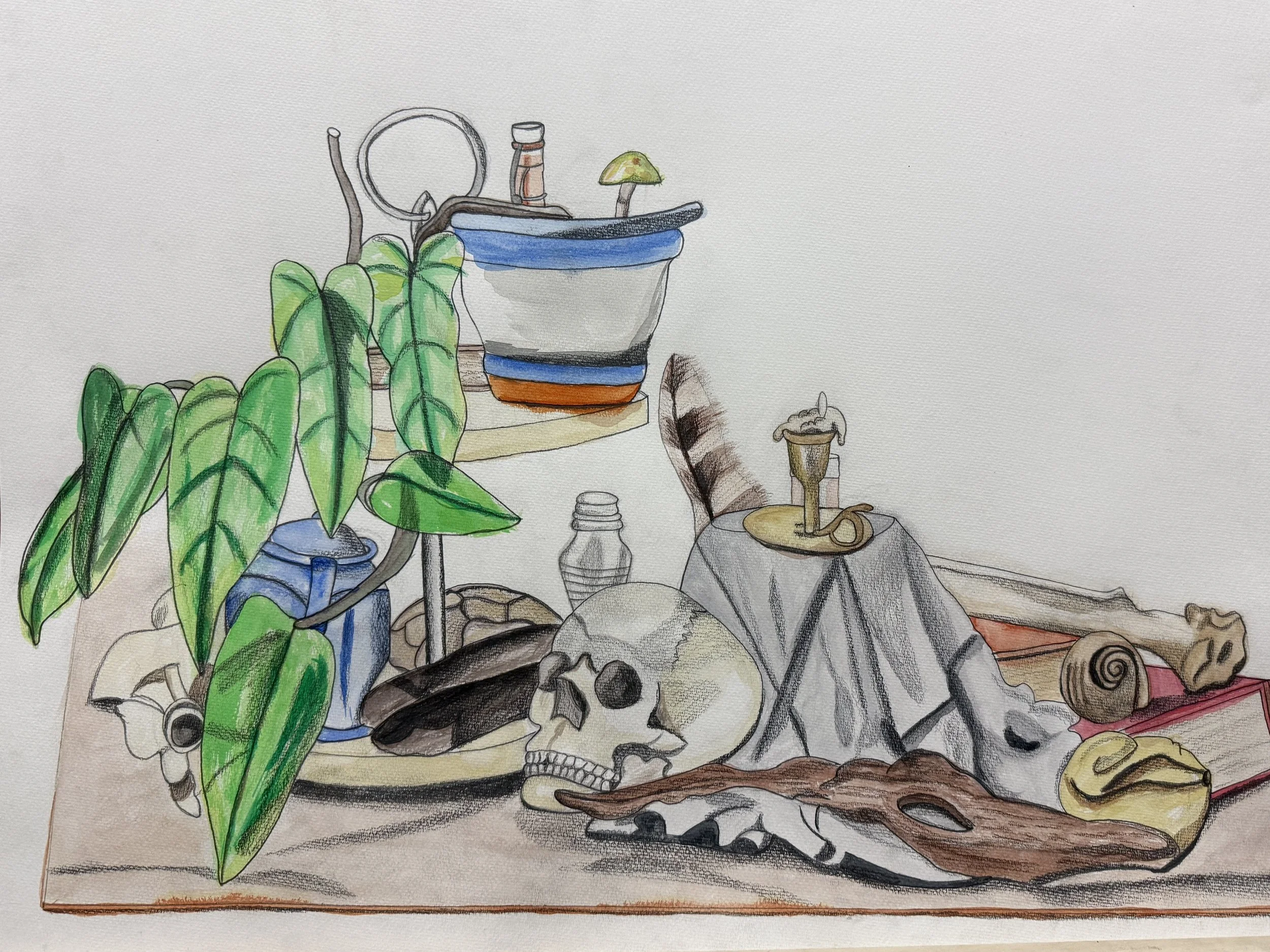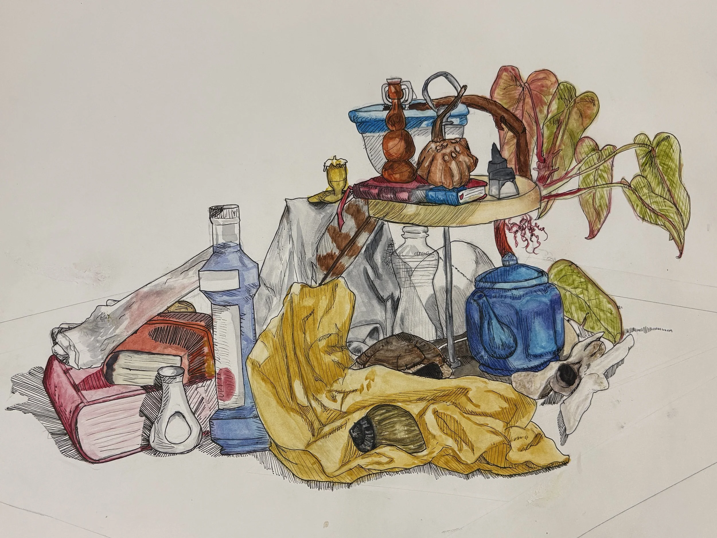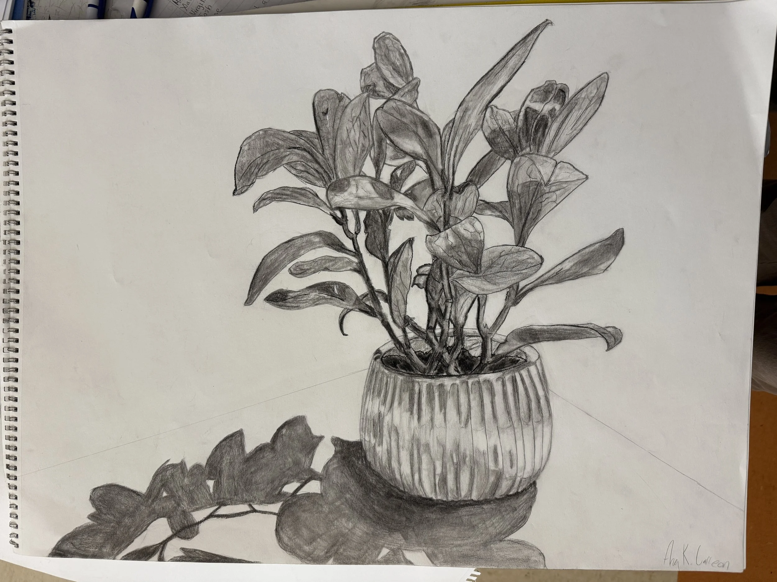 Here are a few choice pieces from this past school year, starting with some Basic Drawing 101 observational art, and a few Color Theory Monochromatic Studies.