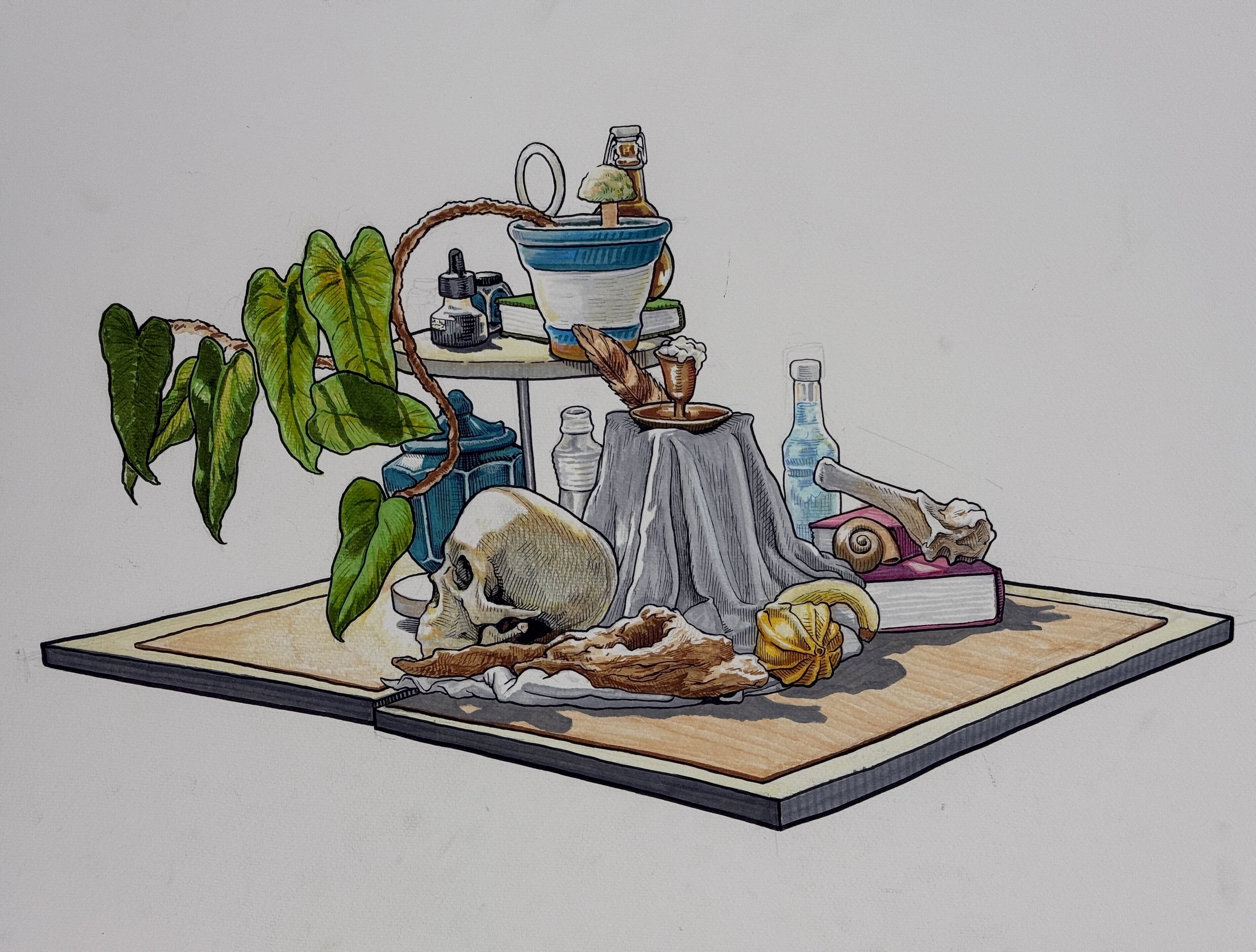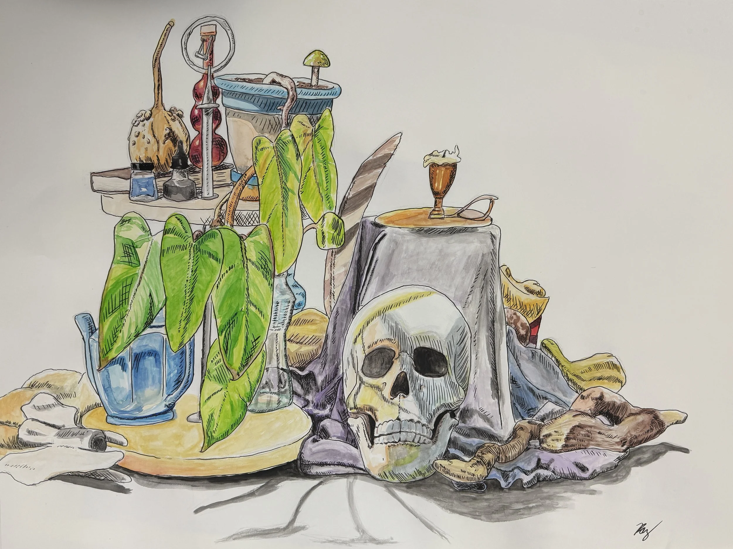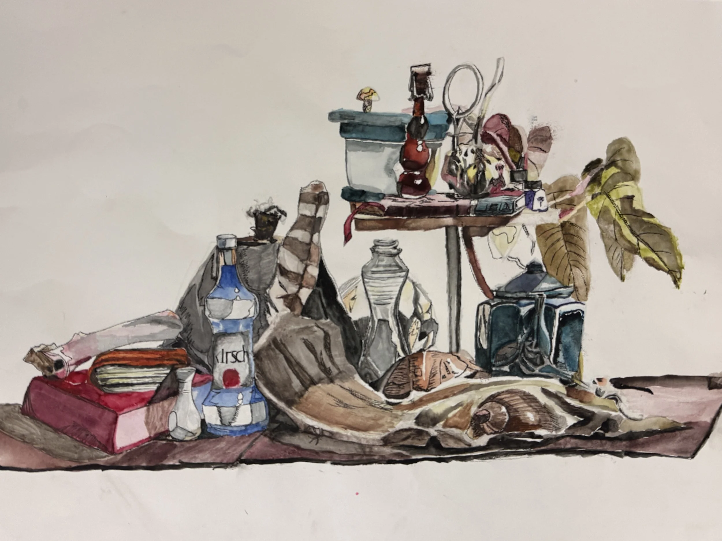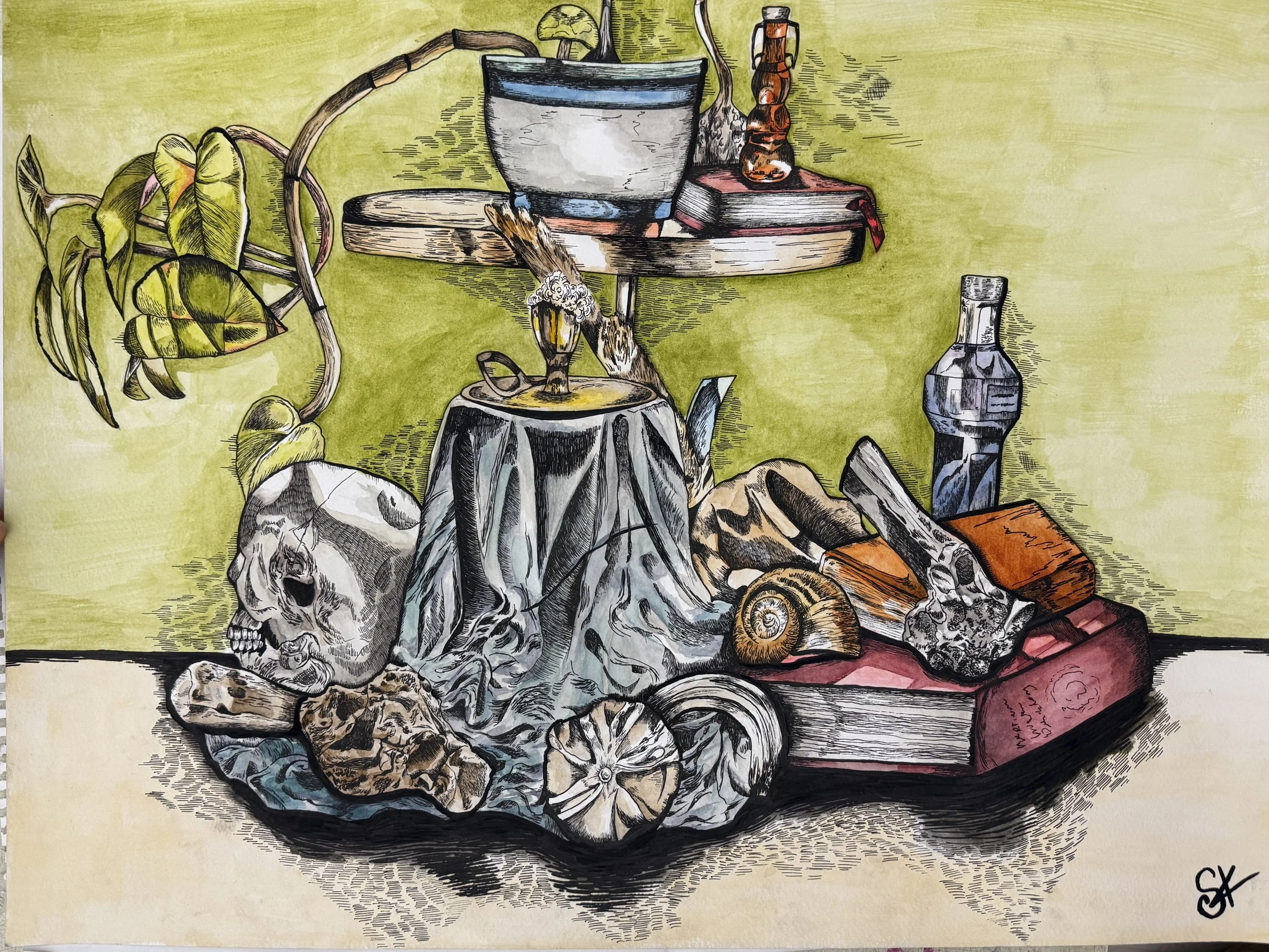 Here are a few choice pieces from this past school year, starting with some Basic Drawing 101 observational art, and a few Color Theory Monochromatic Studies.